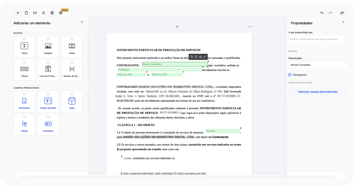 Utilize contratos juridicamente validados pelos principais escritórios de advocacia do país, garantindo segurança em todas suas vendas, com integração automática ao perfil do cliente no CRM para gestão centralizada e eficiente.